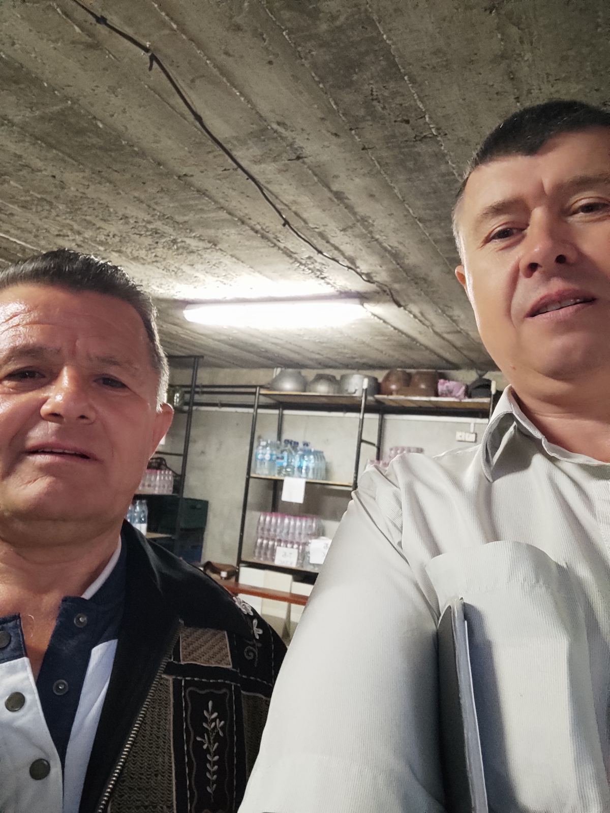 In the first picture, I am with a teacher of geography, Roman in the bombproof under the store. He is a form master of my granddaughter, Julia. He invited me into the parent council of a class. Likewise, he often asks for my counsel and some issues from the Bible. I advised him to read the Bible and write a note about what is misunderstandable for him, and then ask me. He asked me immediately: Vasya, why there is written in Genesis that men born children? Why God chose Israel if it is disobedient, grumbling, and sinful like others? I answered many of his questions and asked him to read the Bible further.